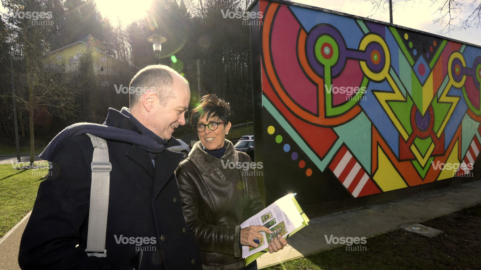 Pierre Clavel et Martine Bihr, devant le mur d’Épinal de la rue Saint-Michel qui sera investi par l’artiste JBC à partir du 9 mars et qui invite à venir échanger avec lui et le voir à l’œuvre. Photo Jean-Charles OLÉ