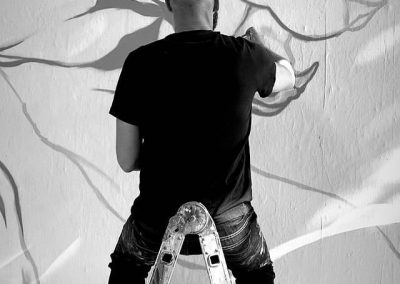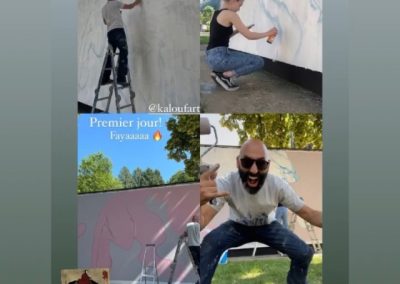 KALOUF est d’un naturel plutôt discret, ce qui contraste avec ses œuvres souvent poignantes, l’artiste aime travailler en extérieur pour interagir avec son public.