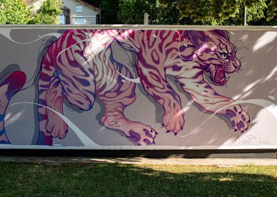 Les animaux de son bestiaire sont hyperréalistes et frappent par leurs couleurs, ses fresques ont non seulement une portée esthétique mais véhiculent un véritable message écologiste.