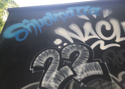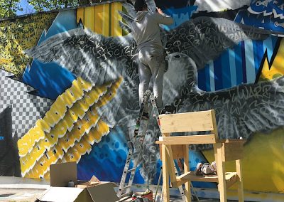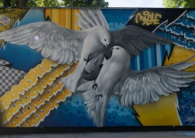 Puis, à Paris, il a fait la rencontre de YASB, un picard membre des 10LEXIK avec qui il a appris à être plus soigneux dans son travail. C’est à son retour à Besançon qu’il a fait la connaissance de Mesh qui lui a permis d’intégrer le LCG Crew et avec lui, il a appris à composer des fresques.