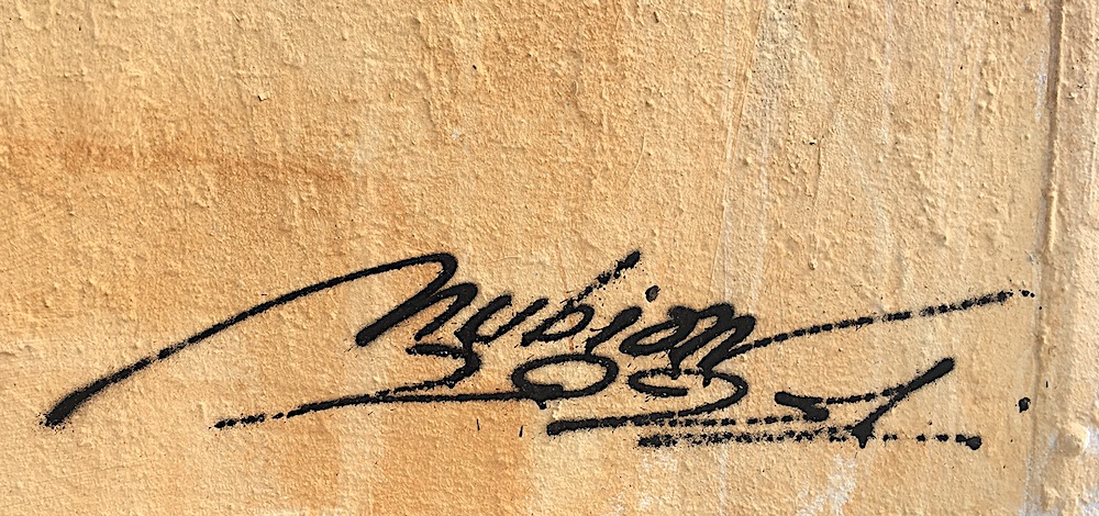 NUBIAN depuis quelques années développe sur mur tout ce que contient ses carnets, on voit fleuris ses fresques depuis Montpellier jusqu’à Brooklyn, dans le Bronx, ou au Mexique.