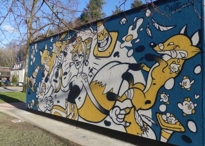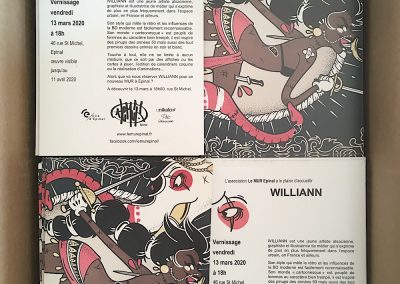 WILLIANN est prolifique. L’artiste se veut touche-à-tout en expérimentant d’autres médiums en se lançant dans la peinture, le papier collé et découpé. Elle décline son univers au travers de la réalisation de « art toys » et « paper toys » mais aussi dans l’animation.