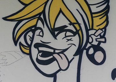 Son monde peuplé de personnages principalement féminins, au caractère bien trempé, s’inspire des pin-ups des années 50 et dessins animés et films en noir et blanc des années 20-30 On retrouve ses créations sur tous supports, que ce soit sur les murs murs d’une chambre et dans la cage d’escalier d’un hotel, dans la rue, les couvertures de magazines, des cartes à jouer, sur des T-shirts et des sous-vêtements …